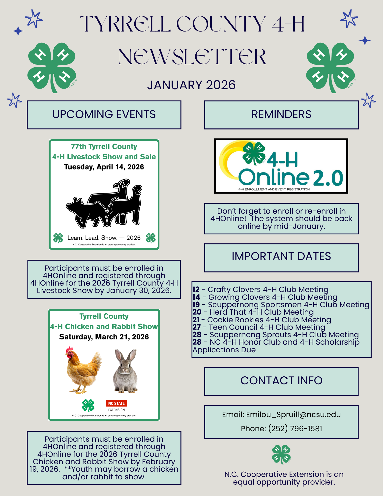 4-H Club Meeting Dates in January 2026